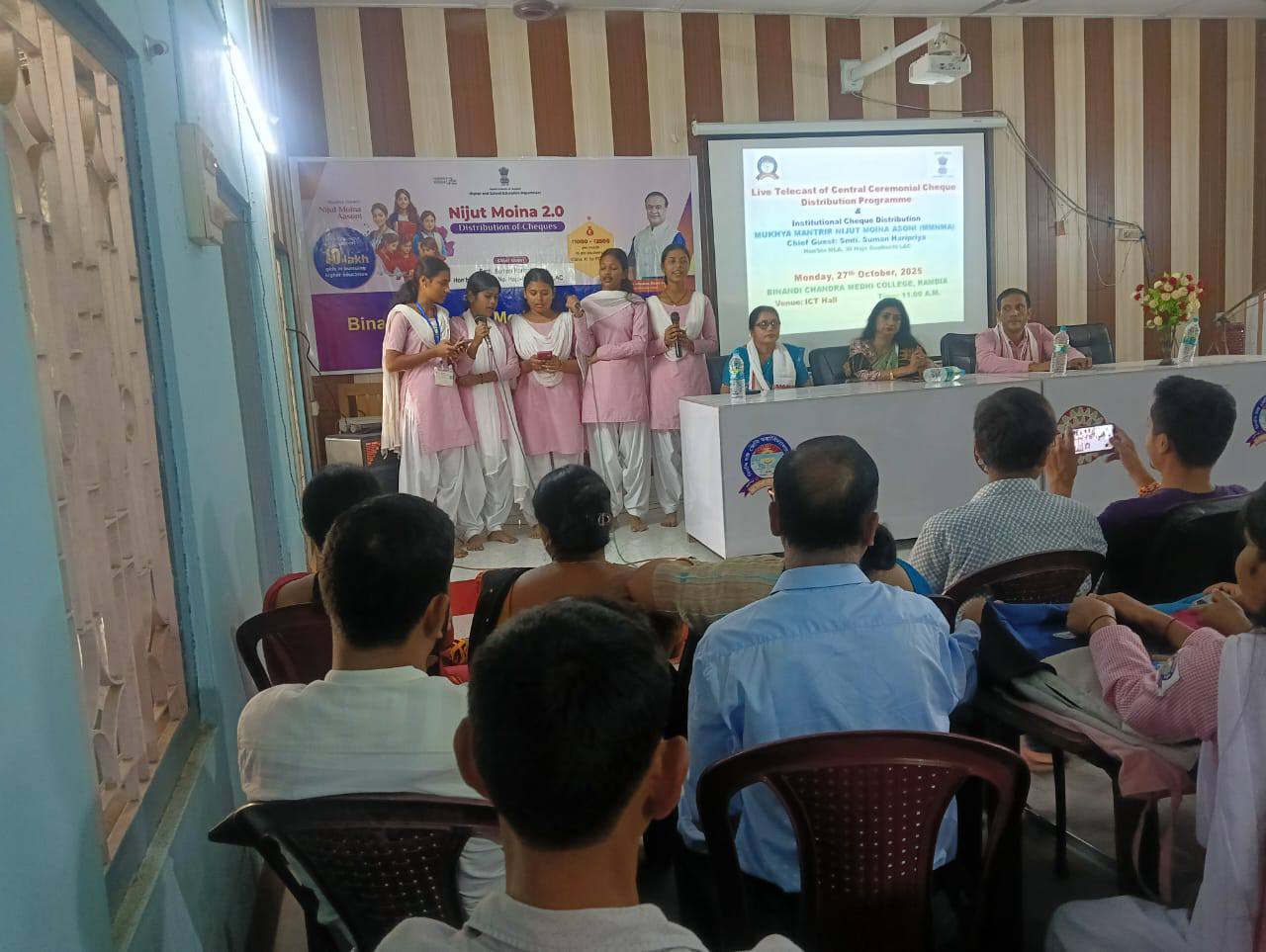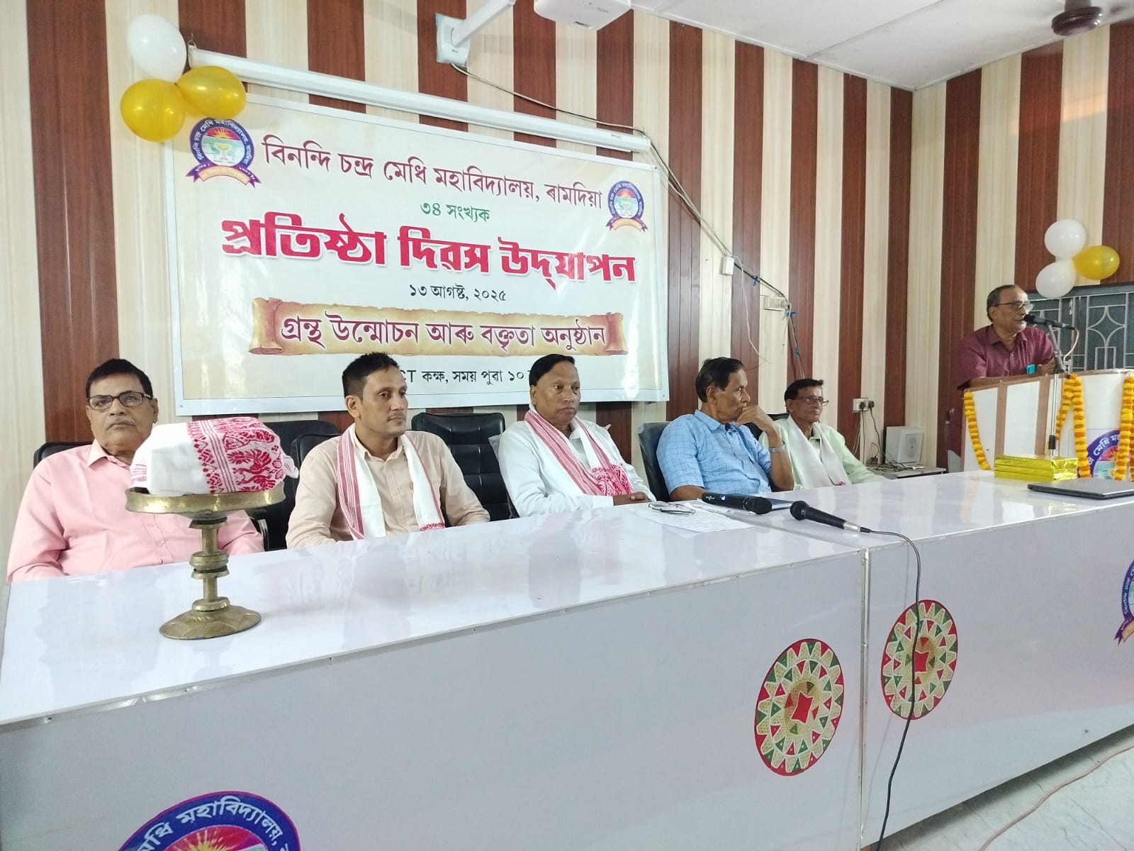 Binandi Ch Medhi College, Ramdia (formerly known as Ramdia College) situated at Ramdia, an institution for higher education was established on August 13, 1992. A group of dedicated persons covering the greater area of Ramdia, Bangalpara, Tokradia, Khetrihardia, Barhardia, Sobancha, Dampur etc. with their relentless and untiring effort has established this institution to provide quality higher education. Later on, the college was renamed as Binandi Chandra Medhi College, Ramdia in the name of the donor's Dr. jyoti Prasad Medhi's father as a gesture of gratitude. Originally, the college started in Ramdia Puthibharal Aru Samuhik Sanskritik Kendra from 13/08/92. The college also obtained permission for concurrence on 29-12-1999 and obtained the Govt. concurrence up to part II level on 27-09-2004 and provincialised in 2013, according to the Assam Govt's Venture Institution provincialisation Act 2011.